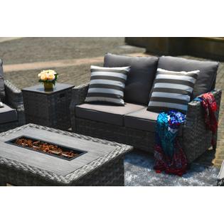 Moda Furnishings Paf 1801 5 Pieces Wicker Patio Sofa Set With Gas Fire Pit Table