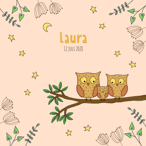 Geboortekaartje jongen met uil op groene achtergrond